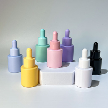 30ml 고품질 플랫 숄더 프로스팅 블루 핑크 색상 에센셜 오일 유리 드로퍼 병 스크린 인쇄 스킨케어 세럼용